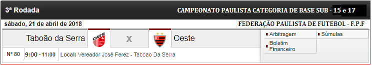 Sub – 15: http://2016.futebolpaulista.com.br/sumulas2.php?cat=17&cam=32&jog=50&ano=2018