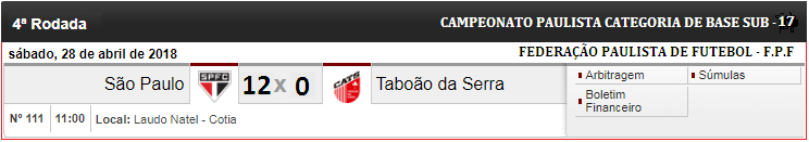 Sub – 17: http://2016.futebolpaulista.com.br/sumulas2.php?cat=18&cam=33&jog=111&ano=2018