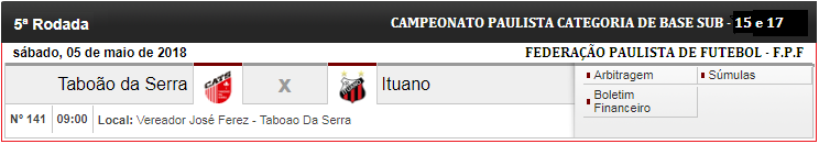 Sub – 15: http://2016.futebolpaulista.com.br/sumulas2.php?cat=17&cam=32&jog=111&ano=2018