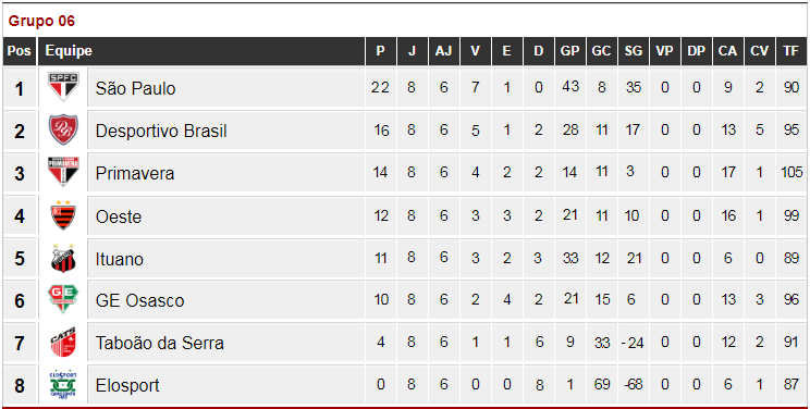 Encerrada a 8ª rodada a 1ª do 2º turno do Campeonato Paulista Categorias de Bases Sub 17, e a nova derrota do time Tabuanense, que segue na competição, com 4 ponto no ativo, ocupando o 7º posto na chave; confira a classificação atualizada do Grupo 6: