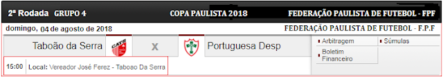 O C. A. Taboão da Serra joga a primeira partida como mandante na Copa Paulista 2018 na 4ª feira, (8), diante da Associação Portuguesa de Desporto e esta partida, válida pela 2ª rodada do 1º turno da 1ª fase da competição, está confirmada para o remodelado Canil do Cão Pastor, o Estádio Municipal Vereador José Feres.