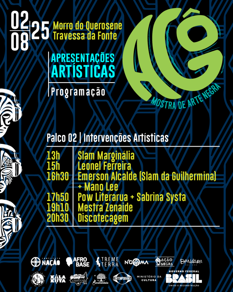 No próximo dia 2 de agosto (sábado), o tradicional bairro do Morro do Querosene, na zona oeste de São Paulo, será palco da terceira edição do Festival AGÔ – Mostra de Artes Negras, uma celebração das estéticas, saberes e expressões artísticas da diáspora africana no Brasil.