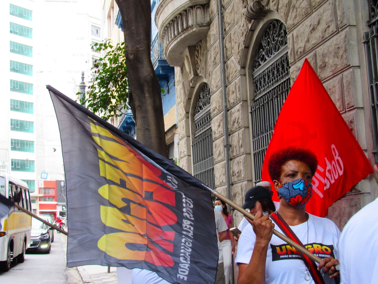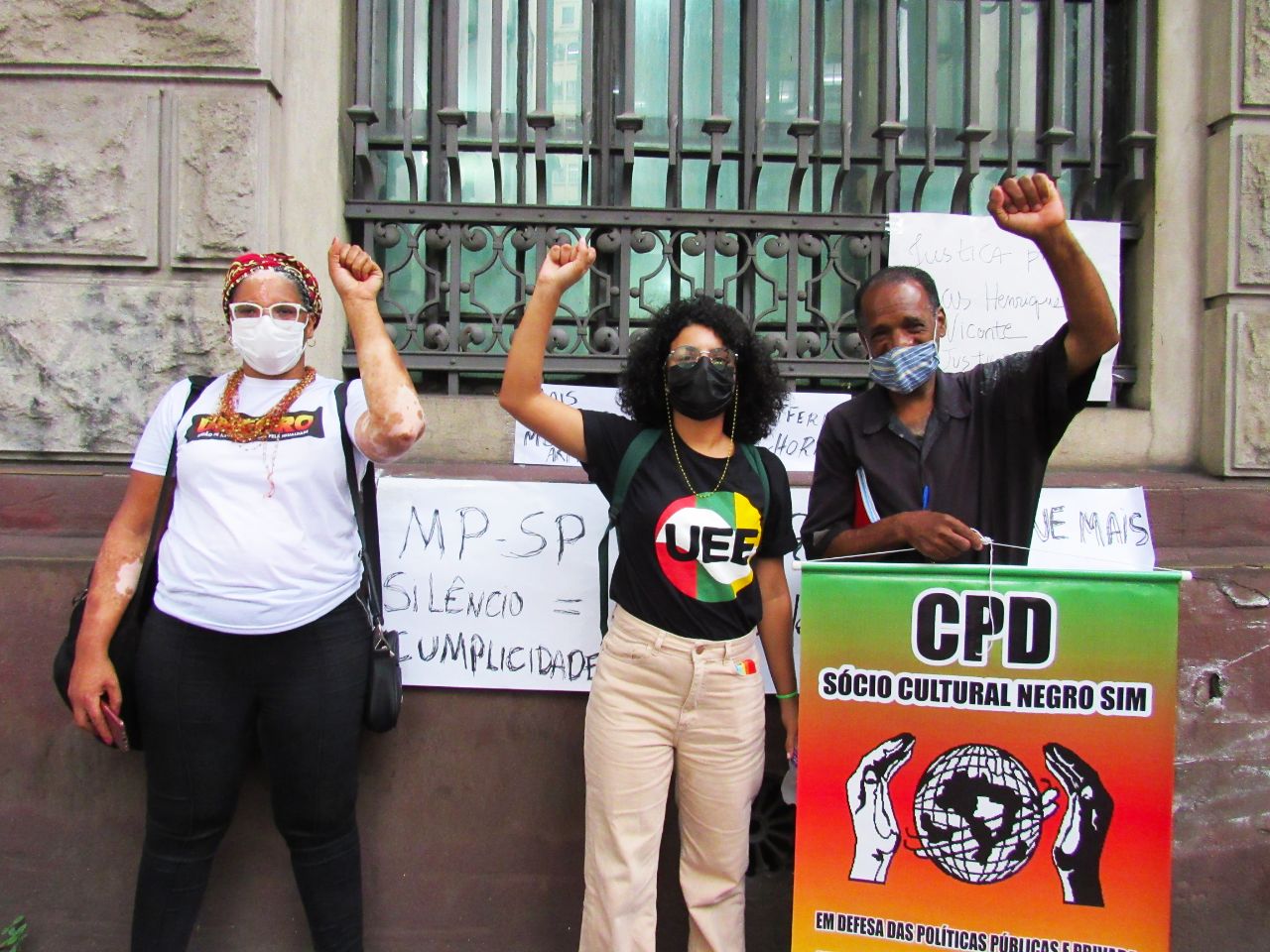 Estiveram, na quarta-feira (23/02), na porta do Ministério Público de São Paulo: A Unegro – União de Negras e Negros pela Igualdade, Conen, Coordenação de Entidades Negras, Convergência Negra, CTB – Central de Trabalhadoras e Trabalhadores do Brasil, UEE – União Estadual dos Estudantes, UJS – União da Juventude Socialista e PCdoB – Partido Comunista do Brasil, Gabinete da Deputada Estadual Leci Brandão e do Deputado Federal Orlando Silva para cobrarem por ações práticas, por mais uma vez a violência policial que vitimou mais um homem negro em São Paulo.