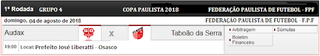 A estreia do Time Serrano na Copa Paulista 2018, já tem data, horário e local definidos, para o próximo sábado, 04/08 ás 19:00 h no estádio Municipal Prefeito José Liberatti, (o Rochedalle) diante da equipe do G. O. Audax, (o Audaxioso) em partida que marca a abertura da competição.