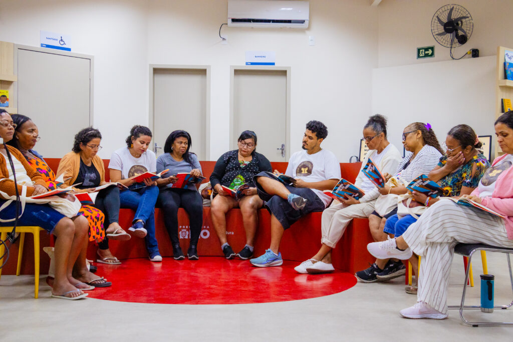 Nossa metodologia é centrada na leitura compartilhada em roda. Atualmente estamos lendo ‘Redemoinho em Dia Quente’, de Jarid Arraes. Os participantes têm liberdade para ler trechos do texto, caso desejem. A proposta é que não haja correções e que todos os jeitos de ler, seja mais pausado ou com menor fluidez, sejam respeitados. Após a leitura, incentivamos a troca de impressões sobre o que foi lido e propomos atividades de escrita, arte ou dinâmicas que se conectem com o conteúdo. Dessa forma, buscamos tornar a leitura mais significativa e estimular produções autênticas dos participantes”, explicam os idealizadores.