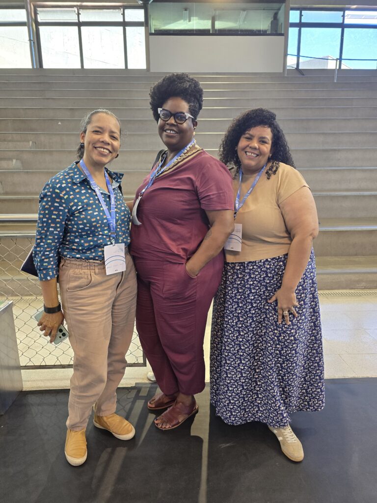A Profa. Dra. Ellen de Lima Souza, coordenadora do grupo de pesquisa LAROYÊ, apresentou uma palestra marcante, questionando a romantização de narrativas da escravidão, como o mito de que tranças eram usadas como “mapas” nas fugas de pessoas escravizadas. Ela também relembrou que as bonecas Abayomi são criação de Lena Martins, e abordou temas como infâncias negras, necropolítica, territórios negros, racismo religioso, filosofia da infância e educação antirracista. Ellen encerrou sua fala apresentando o livro infantil Anaesia e a Origem das Pessoas.