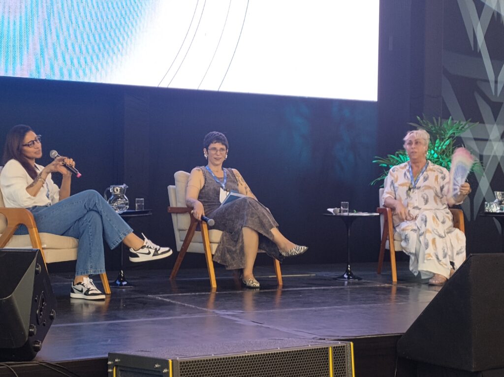 Já Sara Wagner York, jornalista, doutora em Educação e a primeira mulher trans a ancorar o jornalismo brasileiro (TV 247), trouxe uma fala vibrante sobre desinformação e apagamento histórico. York lembrou que conceitos como “racismo estrutural” e “capacitismo” são antigos, mas só ganharam visibilidade recentemente. “Famílias ricas, no passado, enviavam filhos para o exterior para ‘reparação’ de gênero, e, ao voltarem, eram vistas como mulheres”, contou. A palestrante destacou ainda sua contribuição para o termo “gramática do capacitismo” e defendeu a educação como ferramenta de libertação e justiça social.