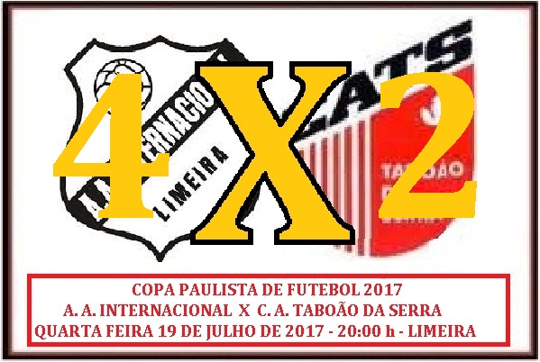 Na noite desta 4ª feira, (19), o Estádio Major José Levi Sobrinho, o Limeião, foi o palco da partida válida pela 4ª rodada do 1º turno da 1ª fase da Copa Paulista Edição 2017, que teve frente a frente, as equipes da A. A. Internacional (o Leão da Paulista) e do C. A. Taboão da Serra, (o Cão Pastor).